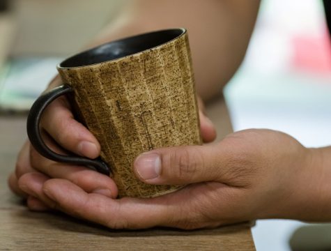 「錆墨(さびもく)」は、人気のシリーズ。外側の錆び色と内側の黒い釉薬がシックな器です。