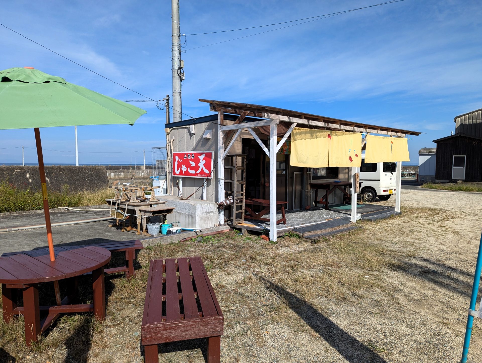 国道378号を長浜へ向かう途中、上灘駐在所交差点を越えたすぐのところに、双海町上灘の浜のお母さんたちによる小さなお店「ふたみじゃこ天」があります。